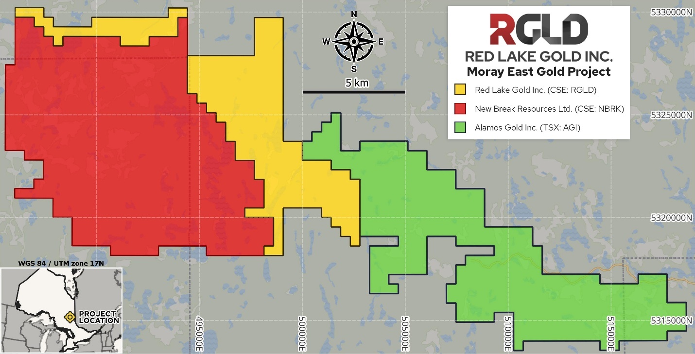 Red Lake Gold Inc. Announces the Moray East Gold Project, Situated Adjacent to New Break Resources Ltd. and Alamos Gold Inc.